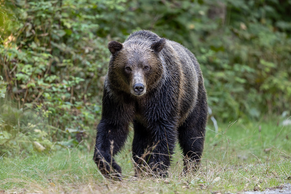 Oh boy, this huge Grizzly just wandered slowly up a track to the side of us and got to with 5 metres before deciding we were not as appetising as the salmon in the river!