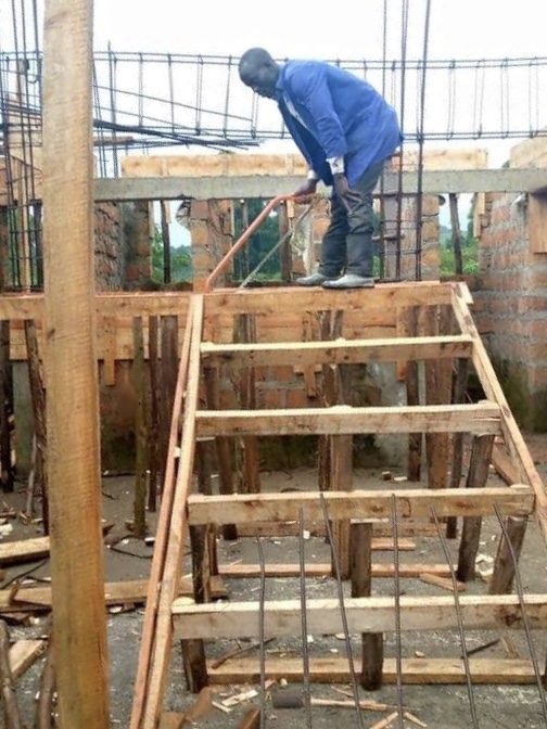 Martin and his team are certainly getting a move on…. the slab is on the top of the longer section and now they are starting to shutter up the shorter section so they can put in the steel and then the concrete to make the slab.